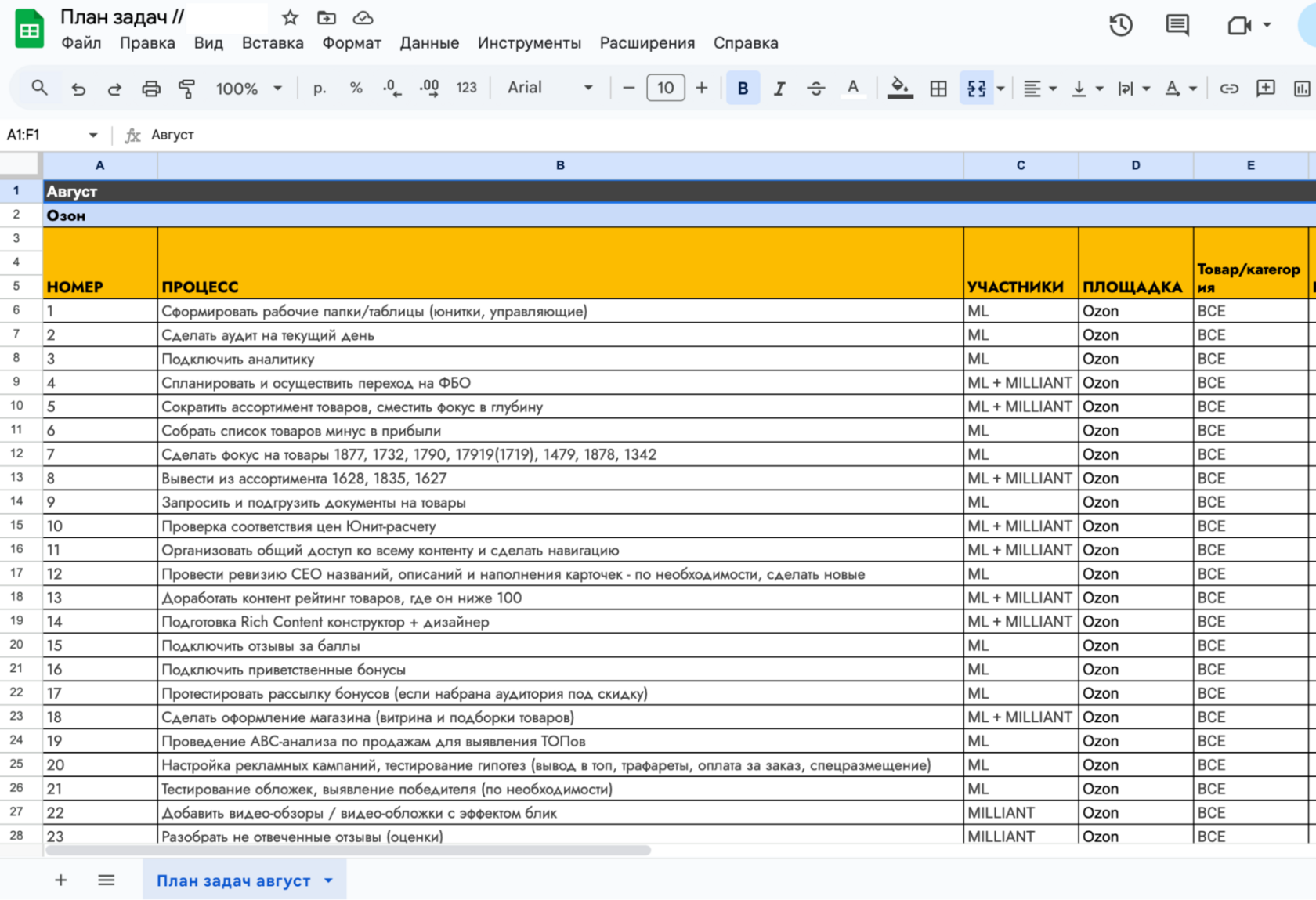 За первый месяц сотрудничества мы погрузились в текущие процессы магазина, реализовали переход с FBS на FBO, провели ABC-анализ - убрали из матрицы товары, которые забирали прибыль, пересобрали СЕО названия, описания, хештеги, характеристики, порядок фото, рич-контент, добавили видео и видео-обложки к части товаров. Собрали таблицу для расчета юнит-экономики товаров и участия в акциях, внедрили график участия. Нашли ошибки в сборке заказов - передали подробную инструкцию складу, разобрали финансы - где выявили часть затрат, которых можно избежать в будущем