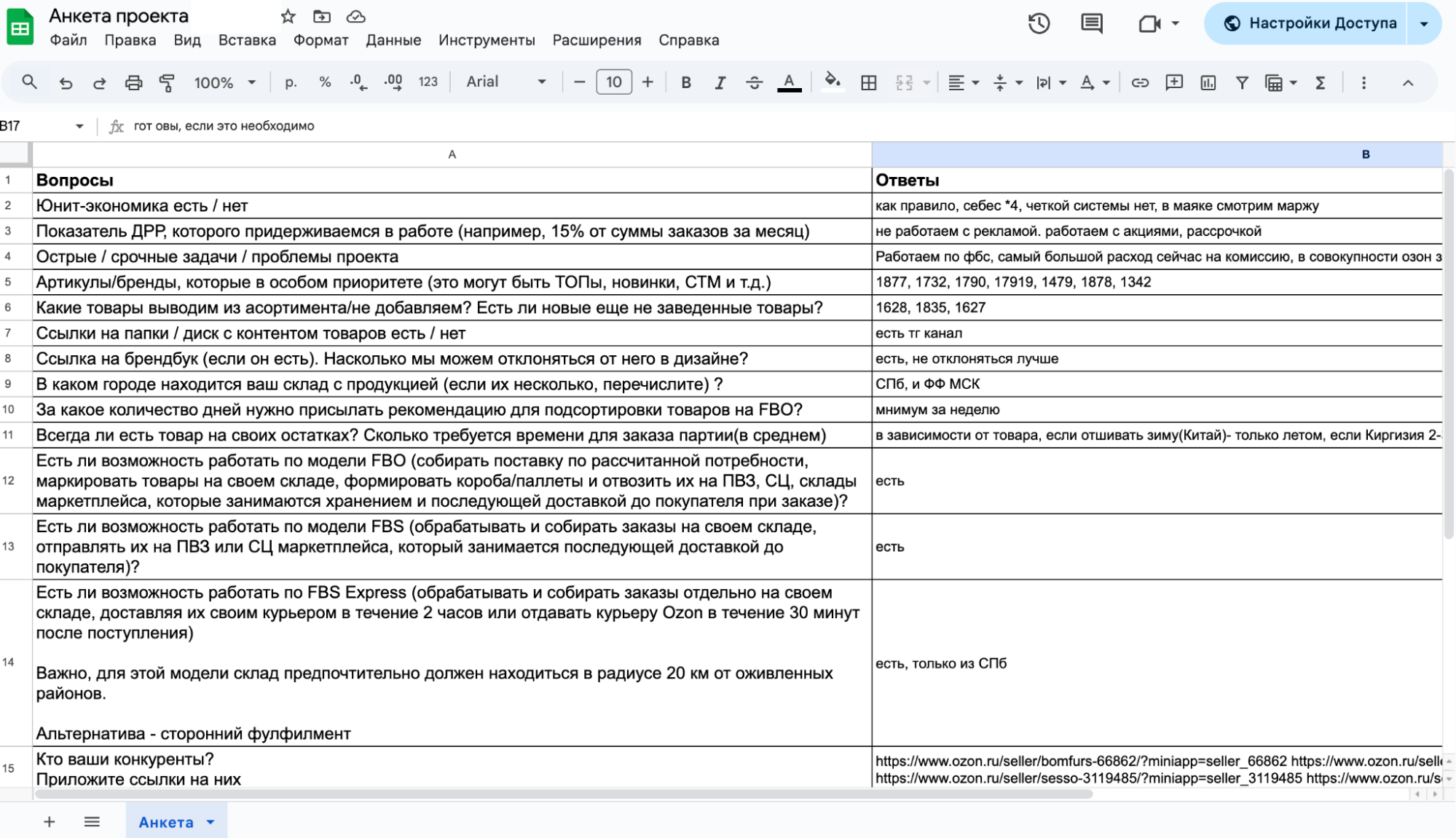 - Сделали анкетирование, запросили всю необходимую для нашей работы информацию, погрузились в процессы